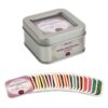 Die Symbole sind auf Karton gedruckt, 5cm große und laminiert in einem handlichen Metalldöschen mit Sichtfenster.
